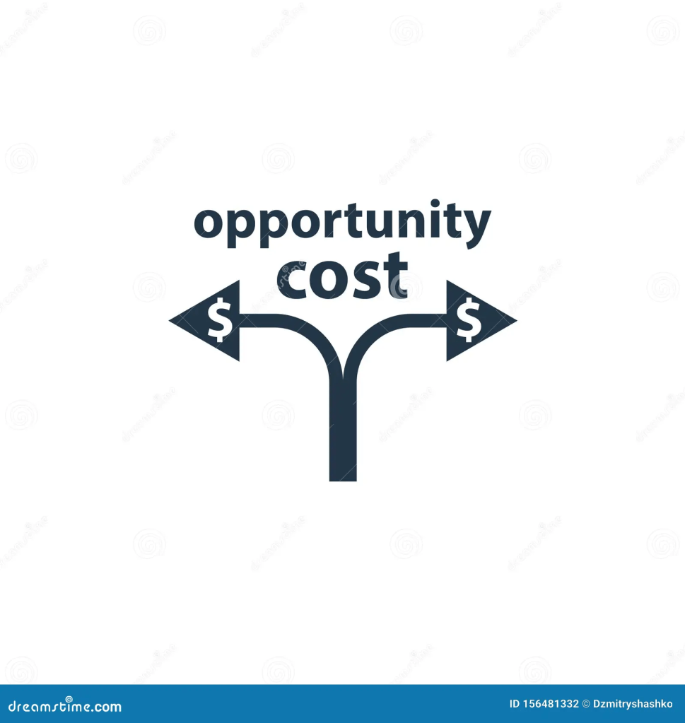This post is totally related to a concept that I am currently studying in Economics: opportunity cost. It is defined as ” the benefit that is missed or given up when an investor, individual or business chooses one alternative over another”.